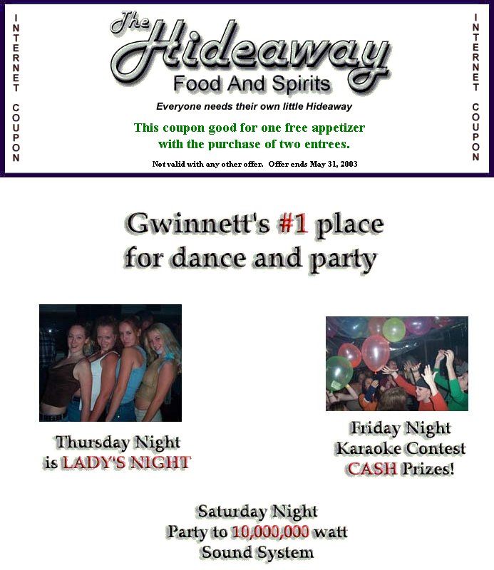 Visit our Web site at www.the-hideaway.biz