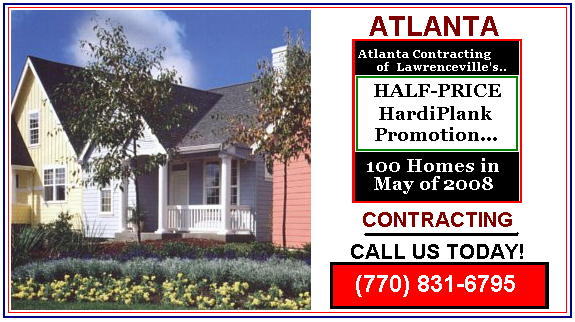 Atlanta Contracting has been highly active in the home improvement market throughout greater Atlanta for 25 years. They have thousands of homes who's owners have been very happy with the work they've done. Their list of references is in the hundreds. They currently run a half dozen highly specialized work crews - but have access to roughly a dozen more that have been factory trained by various manufacturers of building materials that are most commonly used throughout the SouthEast. Atlanta Contracting is celebrating their 25th anniversary by offering a 50% discount on replacing homeowner's defective siding with genuine HardiPlank fiber cement siding throughout the month of May of 2008 for qualified homeowners throughout Greater Atlanta. Painting can be done by Atlanta Contracting or by any other company you choose. Many of our clients often have relationships with other painters or will sometimes paint their homes themselves. Even others will shop around for the best price they can find. Atlanta Contracting will be happy to paint your home, but painting is done under a completely separate contract. Atlanta Contracting's pricing on interior and exterior painting is very competitive with other painting contractors in the industry and is warranted for the period of time that the paint used specifies. Sherwin Williams 25 Year "SuperPaint" offers a 25 year warranty and Atlanta Contracting will honor not only that paint's warranty period, but also their labor during that period of time. PRICING Here’s how it works…. 1. The homeowner MUST be ready to replace their home's defective LP or Masonite siding with HardiPlank in May of this year to qualify for the 50% discount program. If they’re not quite sure, simply let the folks at Atlanta Contracting know when you call and they’ll schedule your appointment for some time in June or later. Final payment is not required until the homeowner is completely satisfied with all of the work that's been performed by Atlanta Contracting. During the initial contract signing, the homeowner will be given a list of all work that is to be performed by Atlanta Contracting, with each item listed on a separate line item with its associated cost. Both parties will sign the contract and a deposit is required from the homeowner once the materials have been delivered. This deposit is usually 50% of the project's total cost and usually amounts to about two thirds of the value of the building materials that are being delivered. Any possible deficiencies will be fully addressed before final payment is requested by Atlanta Contracting. Final payment is due from the homeowner once both parties agree that the work has been done to everyone's complete satisfaction. Once final payment has been made in full, the homeowner will be issued a James Hardie 50 Year Warranty Certificate along with a "Paid in Full" invoice from Atlanta Contracting which contains their 50 year labor warranty guarantee.