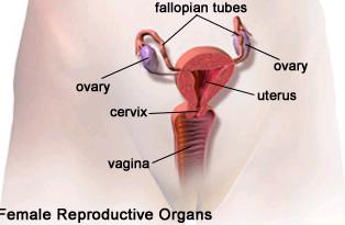 Illustration depicting the human female reproductive organs